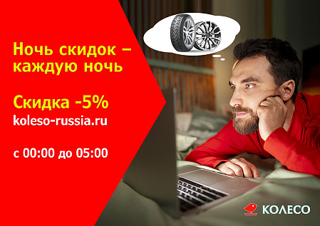- Скидка действует при заказе только на новой версии сайта koleso-russia.ru с оплатой в гипермаркетах;